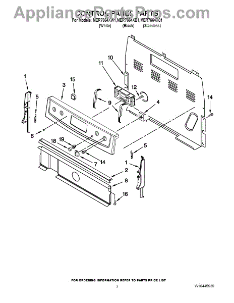 This control bracket secures the appliance control or console assembly, keeping the control board and user interface stable for reliable operation. It helps prevent loose or misaligned controls that can affect button response or display visibility. What it does: