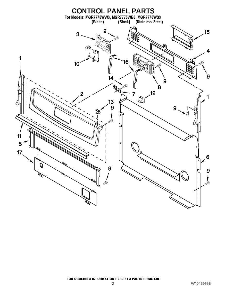 Parts for Maytag MGR7775WB3: 02 - Control Panel Parts