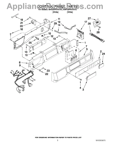 This part is a control board that is used on washing machines. This part is responsible for controlling the washing machine's functions, such as the wash cycle, spinning cycle, filling cycle, and draining cycle. It lights up with whichever cycle is being run. When the control board fails, the washing machine cycles will not work. This means it may not fill with water, spin, drain, or even start. It could be a variety of these symptoms. If the control board comes into contact with water or liquid of any kind, it will become damaged and need to be replaced. Make sure to unplug the washing machine from its power source before beginning this replacement process.This replacement part is sold individually and is an OEM part sourced straight from the manufacturer. This control board is compatible with washing machines that are manufactured by Whirlpool and Maytag.