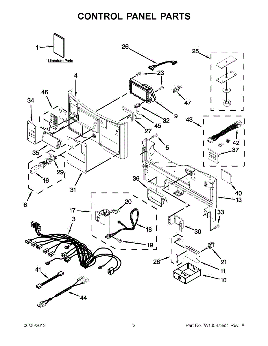 Control panel bezel for laundry center units. Replaces cracked, broken, or discolored bezels around the control area. Restores appearance and finish.