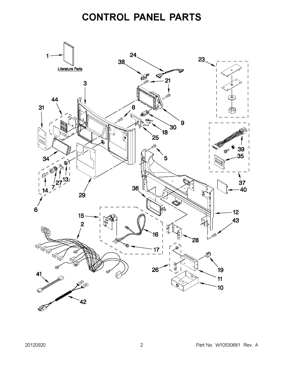 Control panel bezel for laundry center units. Replaces cracked, broken, or discolored bezels around the control area. Restores appearance and finish.