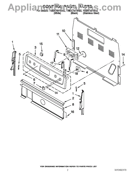 This control bracket secures the appliance control or console assembly, keeping the control board and user interface stable for reliable operation. It helps prevent loose or misaligned controls that can affect button response or display visibility. What it does:
