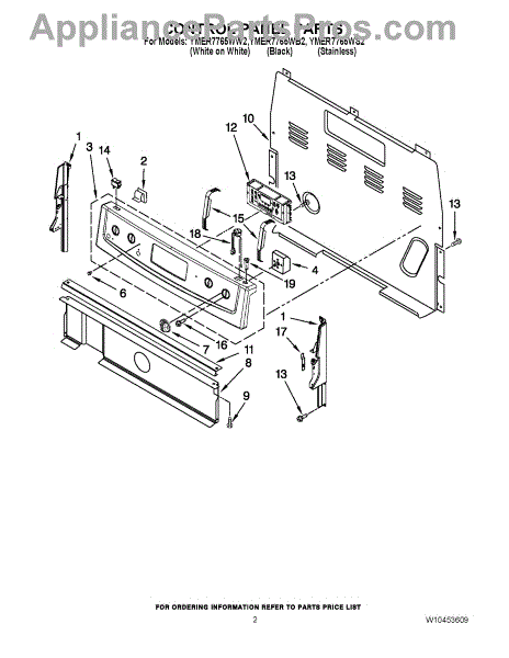 Parts for Maytag YMER7765WW2: 02 - Control Panel Parts