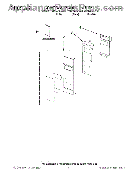 Microwave touch pad control panel user interface assembly. Installs on the front of the unit. Replace if buttons are unresponsive, worn, or cracked.