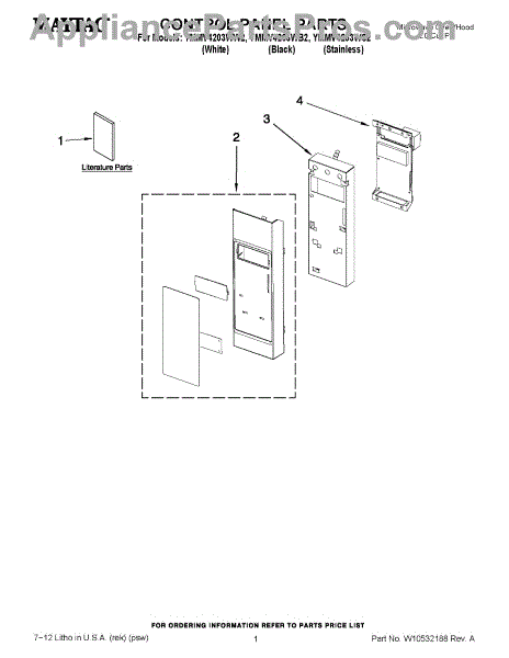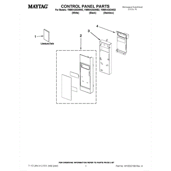 Microwave touch pad control panel user interface assembly. Installs on the front of the unit. Replace if buttons are unresponsive, worn, or cracked.