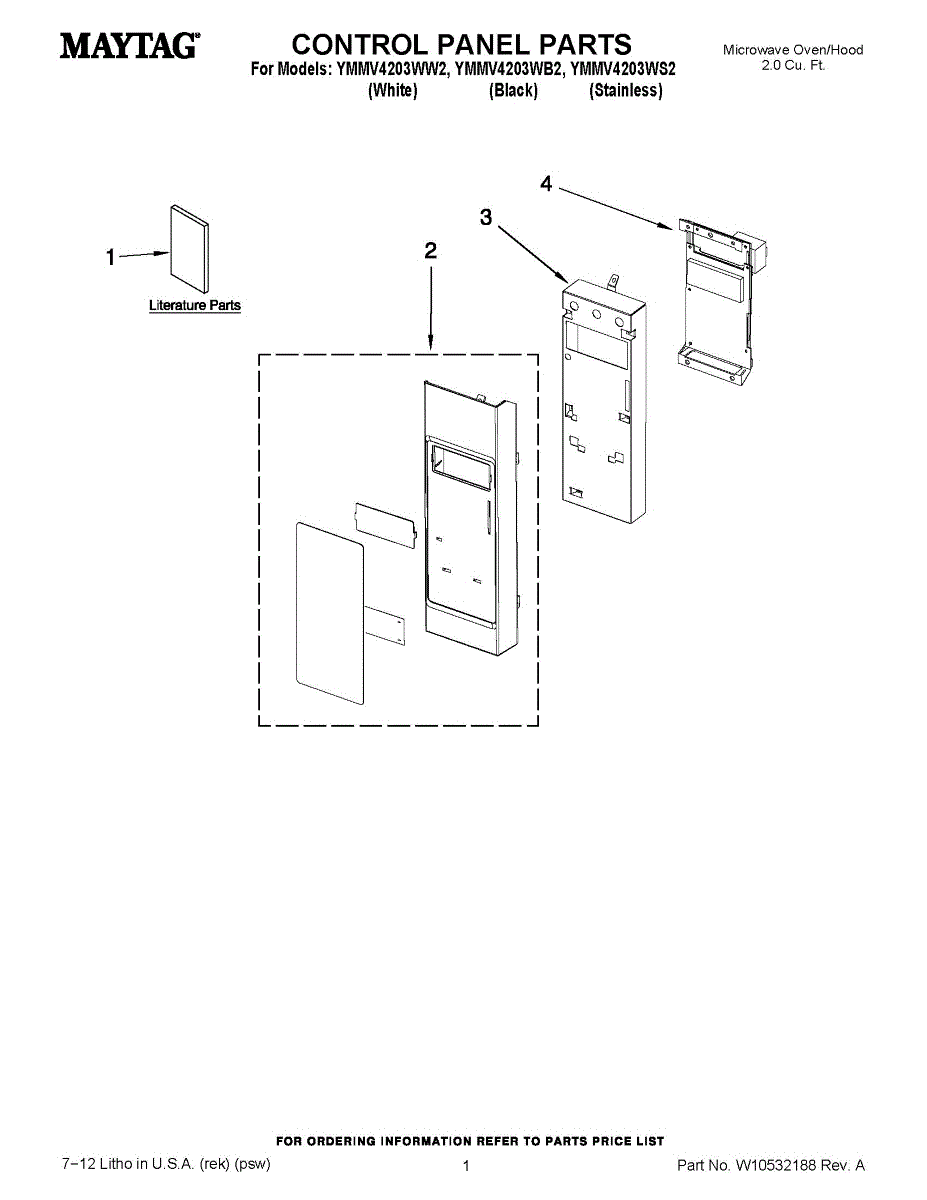 Microwave touch pad control panel user interface assembly. Installs on the front of the unit. Replace if buttons are unresponsive, worn, or cracked.