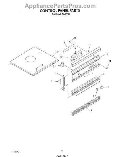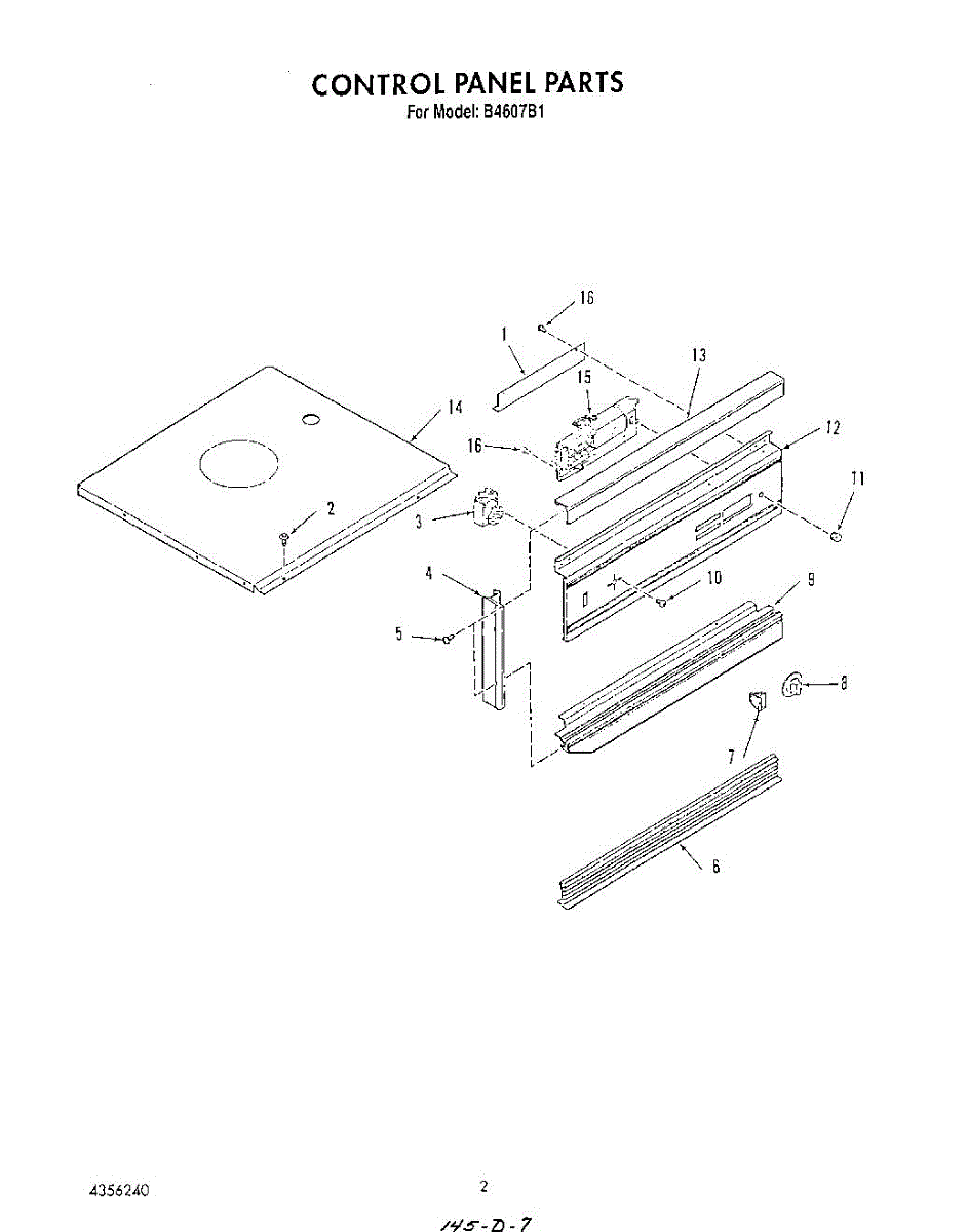 Parts for Roper B4607B1: 02 - Control Panel Parts