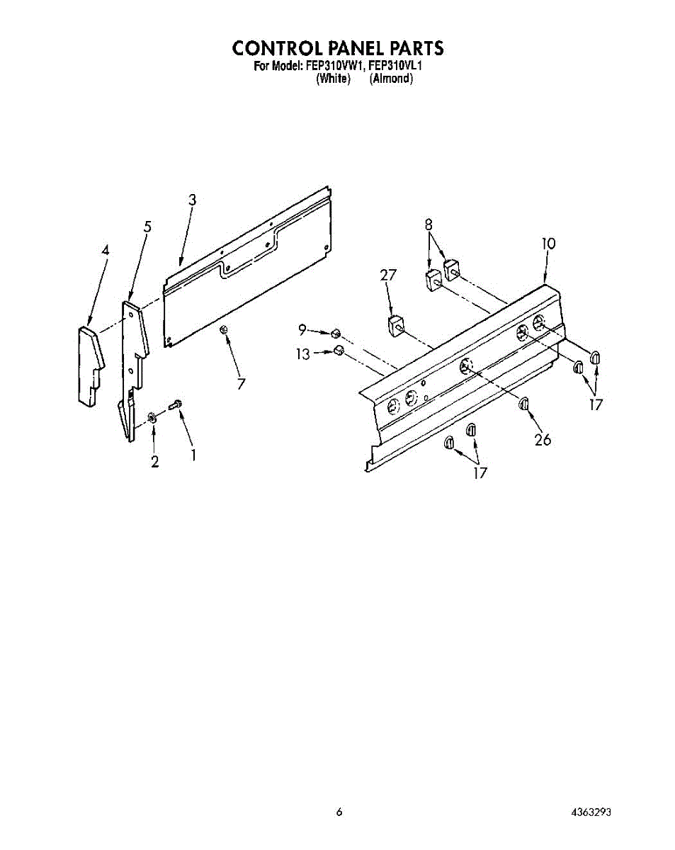Screw secures appliance panels and access covers. Replace missing, stripped, or corroded screws to restore tight fit and eliminate rattles or gaps.
