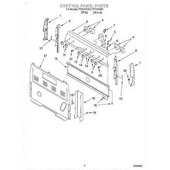 This upper electrical cover protects and conceals the appliance's control box and wiring, helping keep electrical components safe from dust and accidental contact. It restores a finished appearance and supports secure mounting of the console area. What it does: