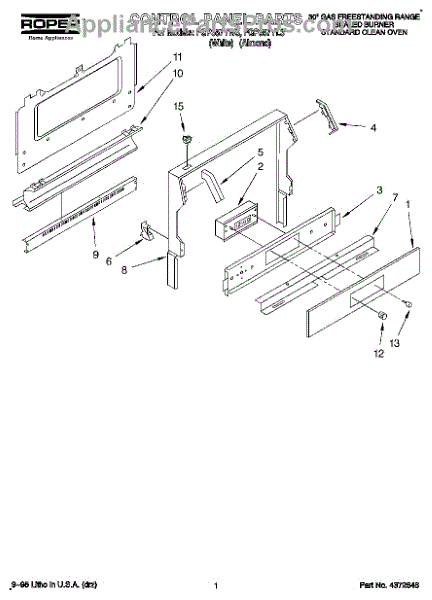 Parts for Roper FGP357YL3: 01 - Control Panel, Literature Parts