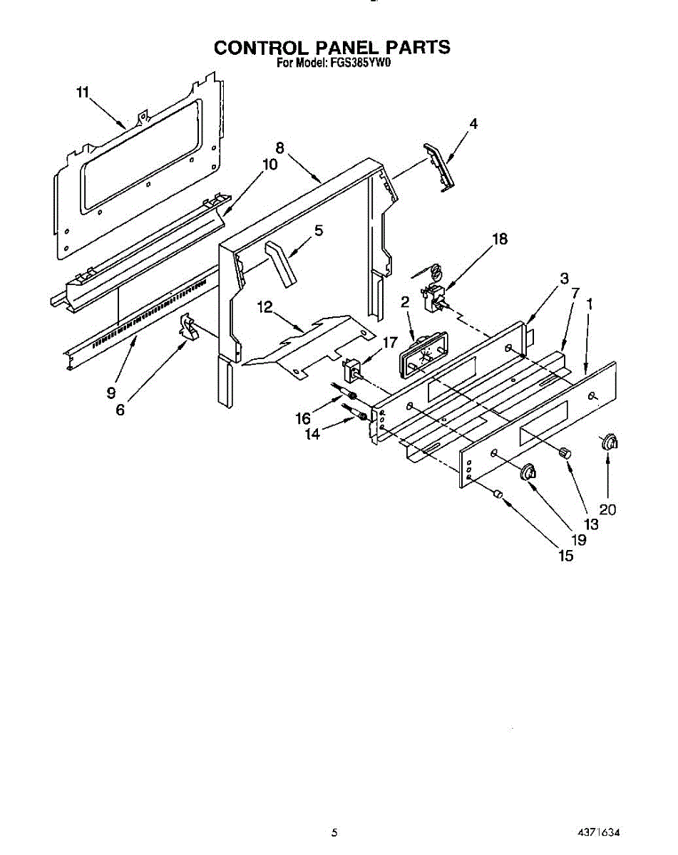 Parts for Roper FGS385YW0: 05 - Control Panel Parts