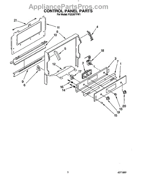 Parts for Roper FGS387YW1: 05 - Control Panel Parts