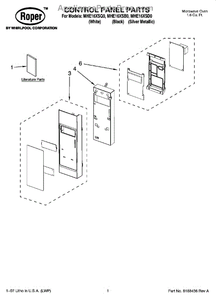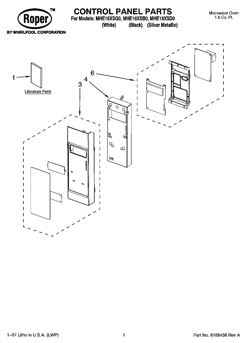 Parts for Roper MHE16XSD0: 01 - Control Panel Parts