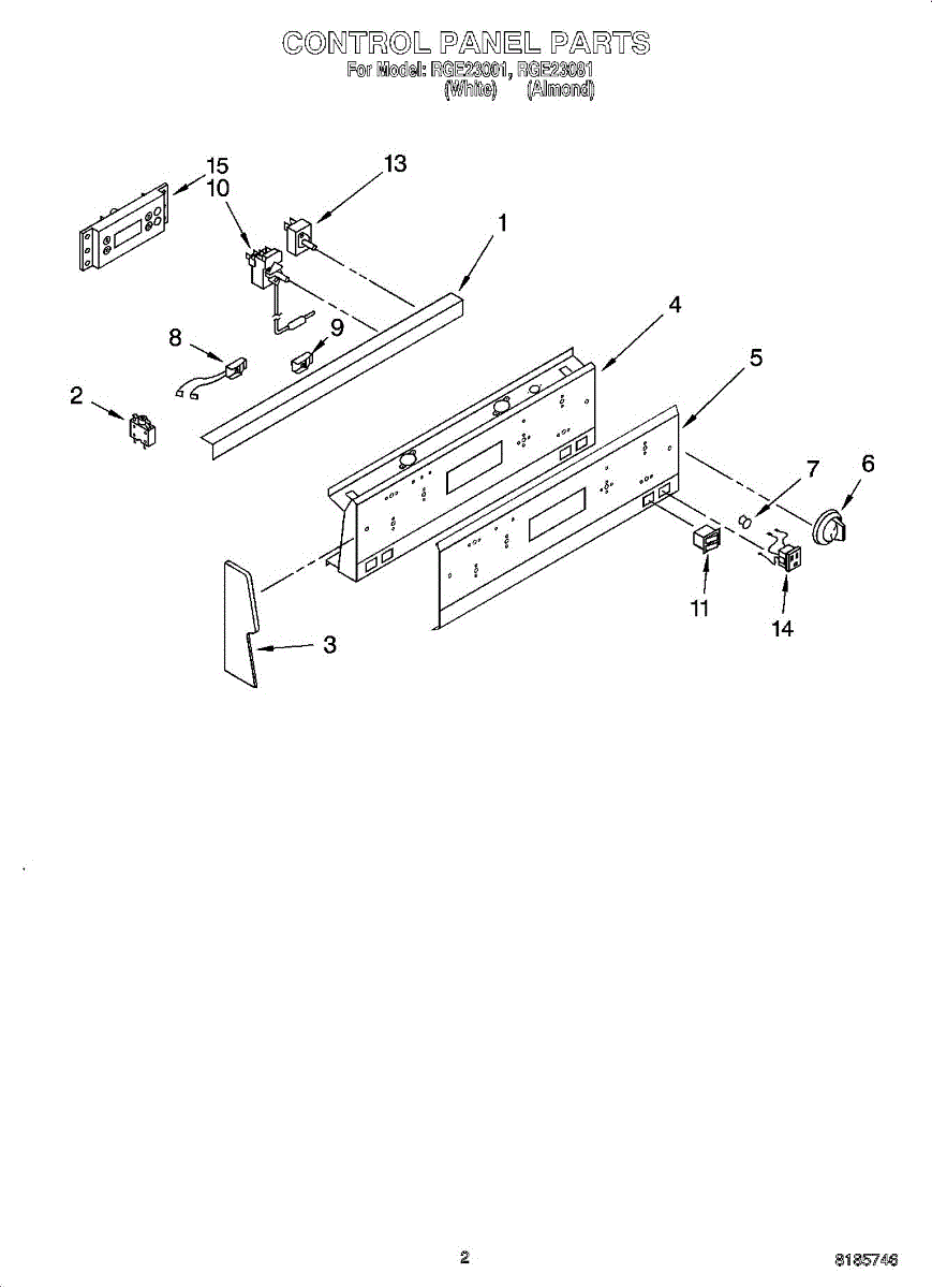 Parts for Roper RGE23081: 02 - Control Panel Parts
