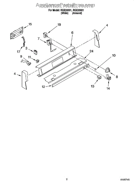 Parts for Roper RGE33001: 02 - Control Panel Parts