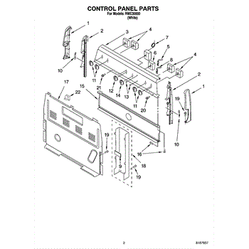 This upper electrical cover protects and conceals the appliance's control box and wiring, helping keep electrical components safe from dust and accidental contact. It restores a finished appearance and supports secure mounting of the console area. What it does: