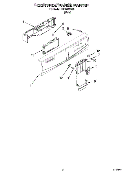 Parts for Roper RUD8000SQ0: 02 - Control Panel Parts