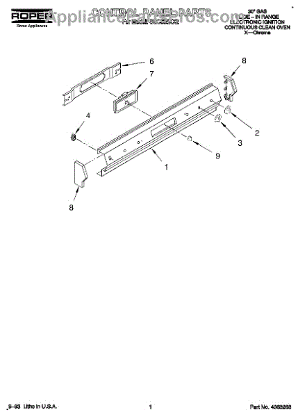 Parts for Roper SGC355XX2: 01 - Control Panel Parts