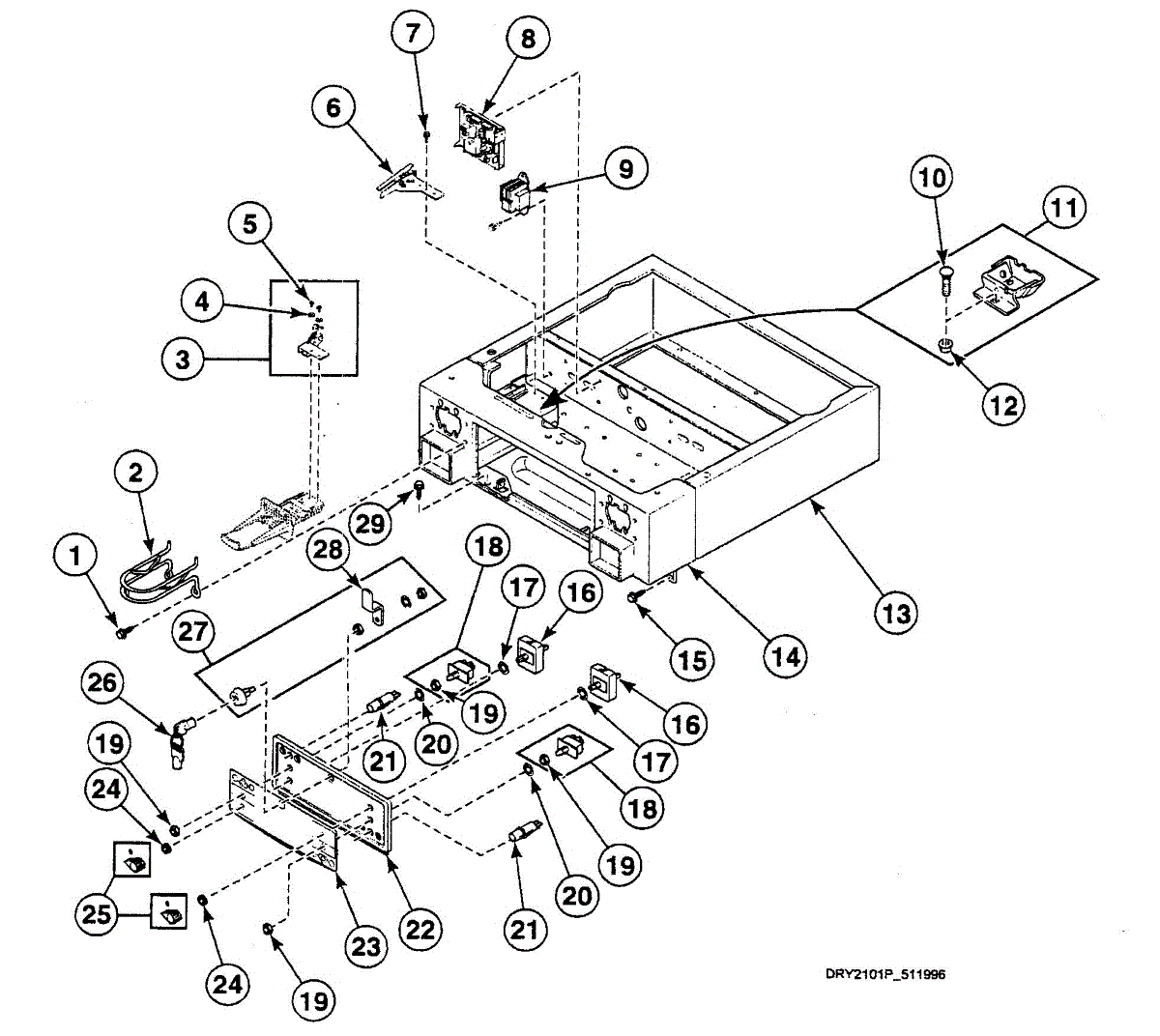 This front cabinet section assembly replaces the damaged or worn front section of the washer cabinet to restore structural support and appliance appearance. Use it to repair dented, cracked or misaligned front cabinet areas on compatible Speed Queen washers. What it does: