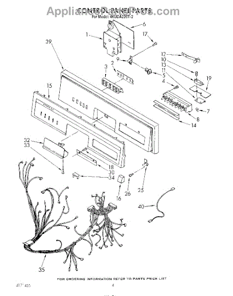 Parts for Whirlpool 4KUDA220T2: 04 - Control Panel , Literature And Optional Parts