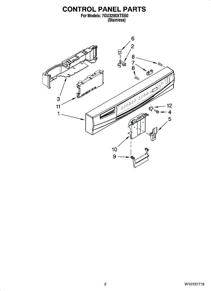 Parts for Whirlpool 7GU3200XTSS0: 02 - Control Panel Parts