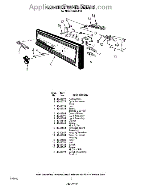 Parts for Whirlpool 8597L10: 10 - Control Panel Parts