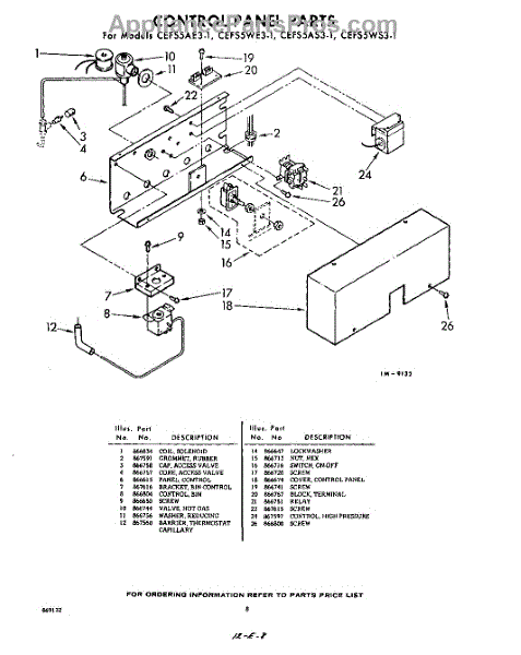 Parts for Whirlpool CEFS5AS31: 08 - Control Panel Parts