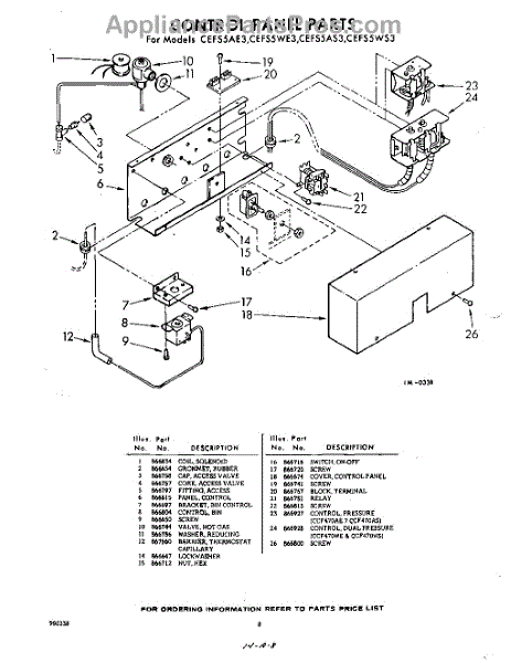 Parts for Whirlpool CEFS5WE3: 08 - Control Panel Parts