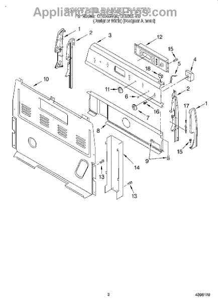 This upper electrical cover protects and conceals the appliance's control box and wiring, helping keep electrical components safe from dust and accidental contact. It restores a finished appearance and supports secure mounting of the console area. What it does:
