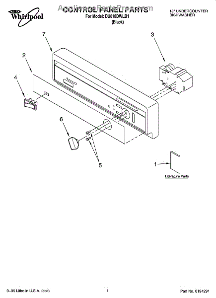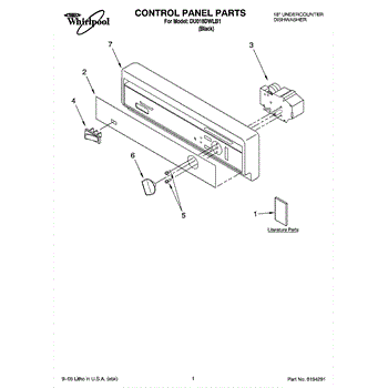 Parts for Whirlpool DU018DWLB1: 01 - Control Panel Parts