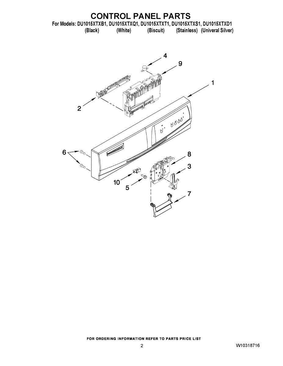 Parts for Whirlpool DU1015XTXD1: 02 - Control Panel Parts