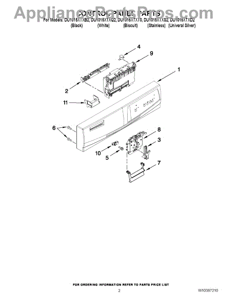 Parts for Whirlpool DU1015XTXS2: 02 - Control Panel Parts