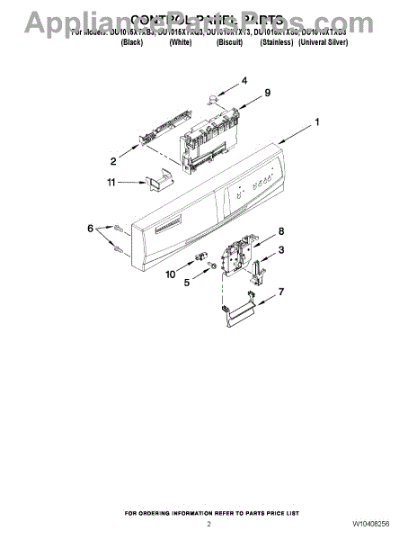 Parts for Whirlpool DU1015XTXT3: 02 - Control Panel Parts