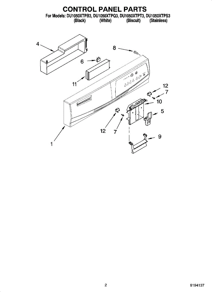 Parts for Whirlpool DU1050XTPT3: 02 - Control Panel Parts