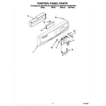 Parts for Whirlpool DU1055XTPT3: 02 - Control Panel Parts