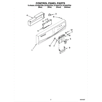 Parts for Whirlpool DU1055XTPT4: 02 - Control Panel Parts