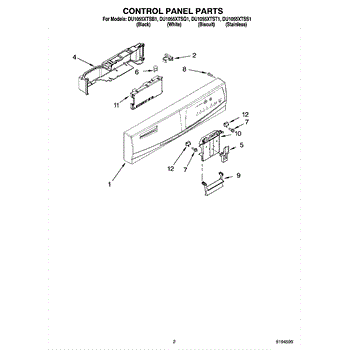 Parts for Whirlpool DU1055XTSB1: 02 - Control Panel Parts