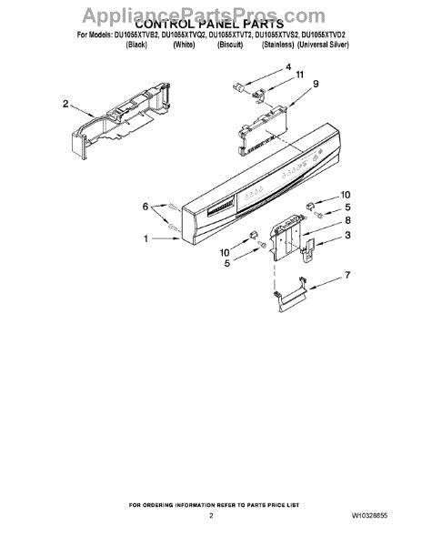 Parts for Whirlpool DU1055XTVD2: 02 - Control Panel Parts