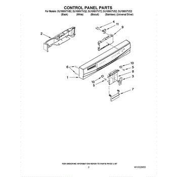 Parts for Whirlpool DU1055XTVT2: 02 - Control Panel Parts