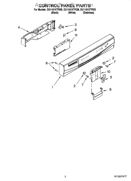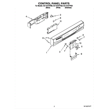 This is the front control panel for the appliance's console. It houses the user interface and protects the electronic controls, restoring a clean look and proper button/selector operation when the original panel is damaged or worn.