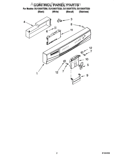 Parts for Whirlpool DU1200XTST0: 02 - Control Panel Parts