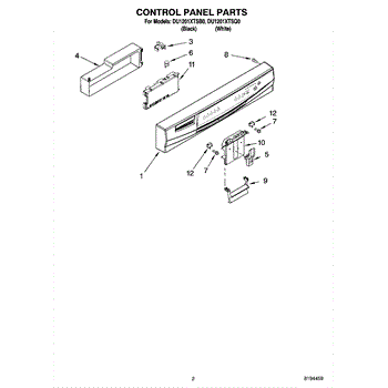 Parts for Whirlpool DU1201XTSB0: 02 - Control Panel Parts