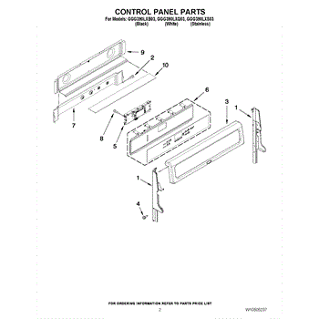 Parts for Whirlpool GGG390LXQ03: 02 - Control Panel Parts