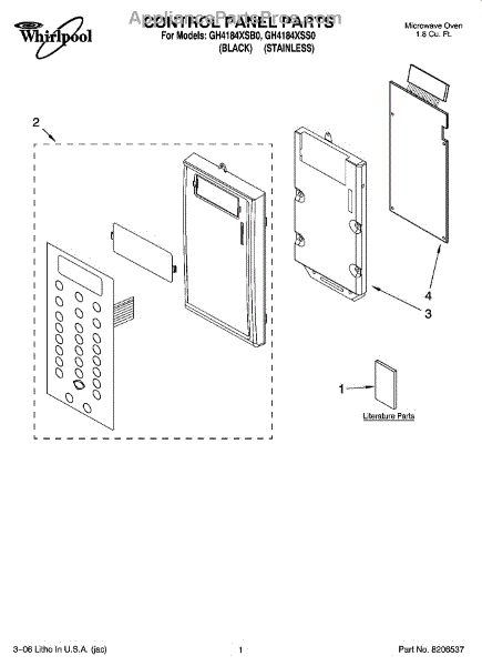 Parts for Whirlpool GH4184XSS0: 01 - Control Panel Parts