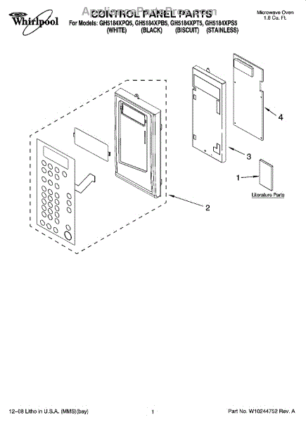 Parts for Whirlpool GH5184XPS5: 01 - Control Panel Parts