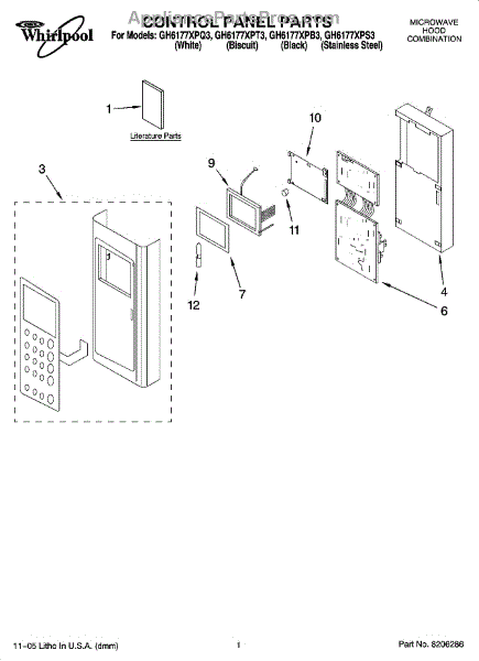 Parts for Whirlpool GH6177XPQ3: 01 - Control Panel Parts