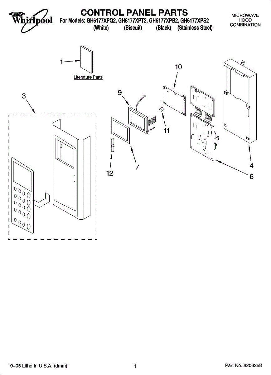 Parts for Whirlpool GH6177XPS2: 01 - Control Panel Parts