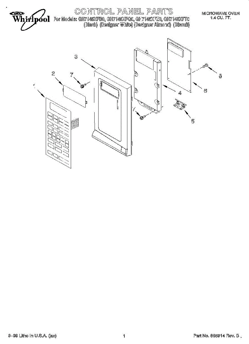 Parts for Whirlpool GH7145XFB0: 01 - Control Panel, Literature Parts
