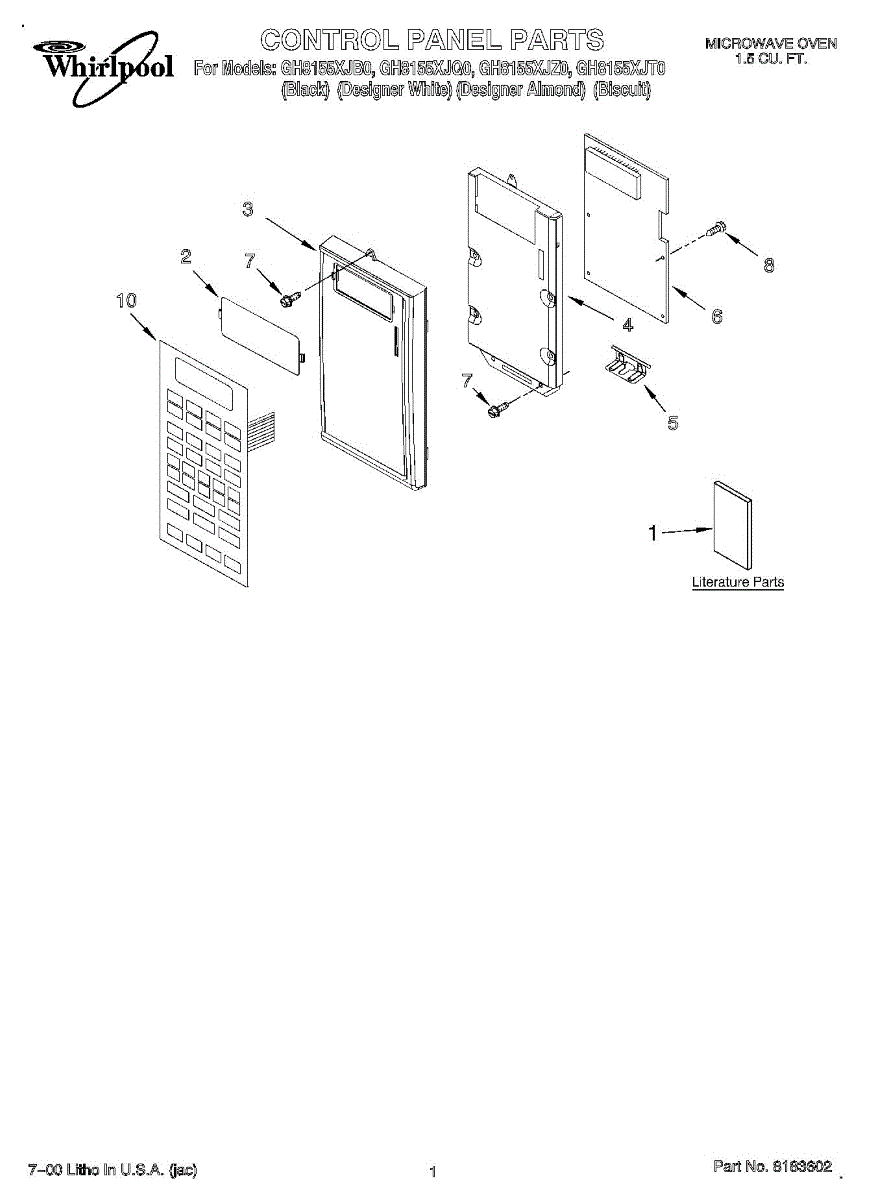 Parts for Whirlpool GH8155XJB0: 01 - Control Panel, Literature Parts