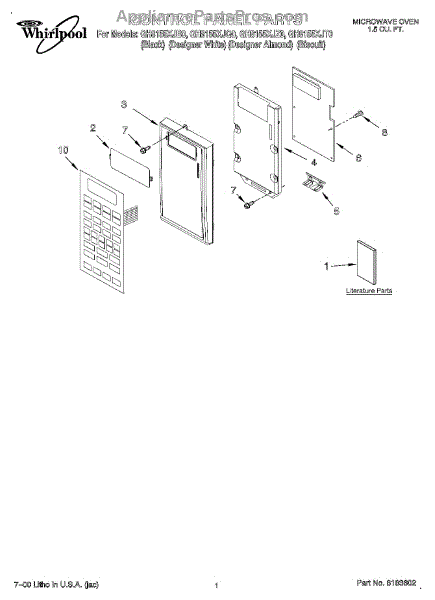 Parts for Whirlpool GH8155XJQ0: 01 - Control Panel, Literature Parts